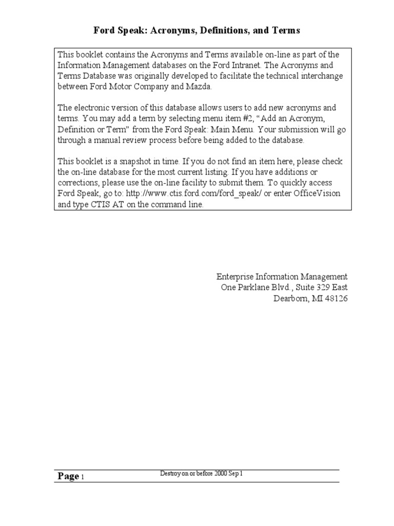 Ford Acronyms Booklet Annual Percentage Rate Automatic Transmission