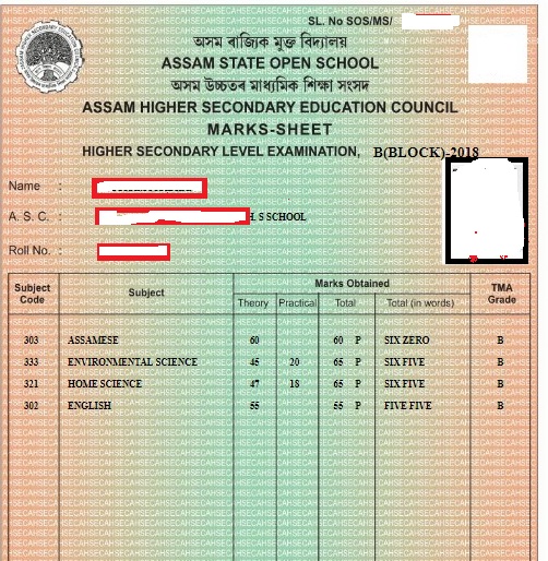 Assam Sos Hs Marksheet 2018 Download Sos Assam Hs Marksheet Assamgovtsakari Com Latest Assam Career Job News In Guwahati Assam And Ne India