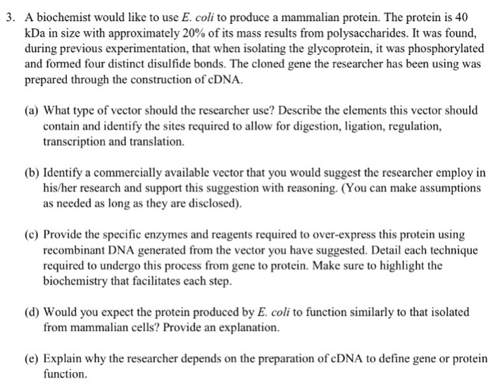 Solved 3 A Biochemist Would Like To Use E Coli To Produ Chegg Com