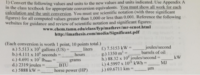 Solved Convert The Following Values And Units To The New Chegg Com