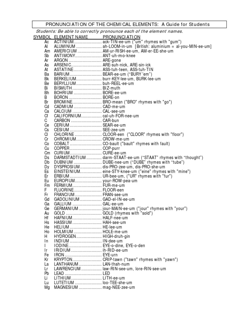 How To Pronounce The Chemical Elements Painfulenglish Com